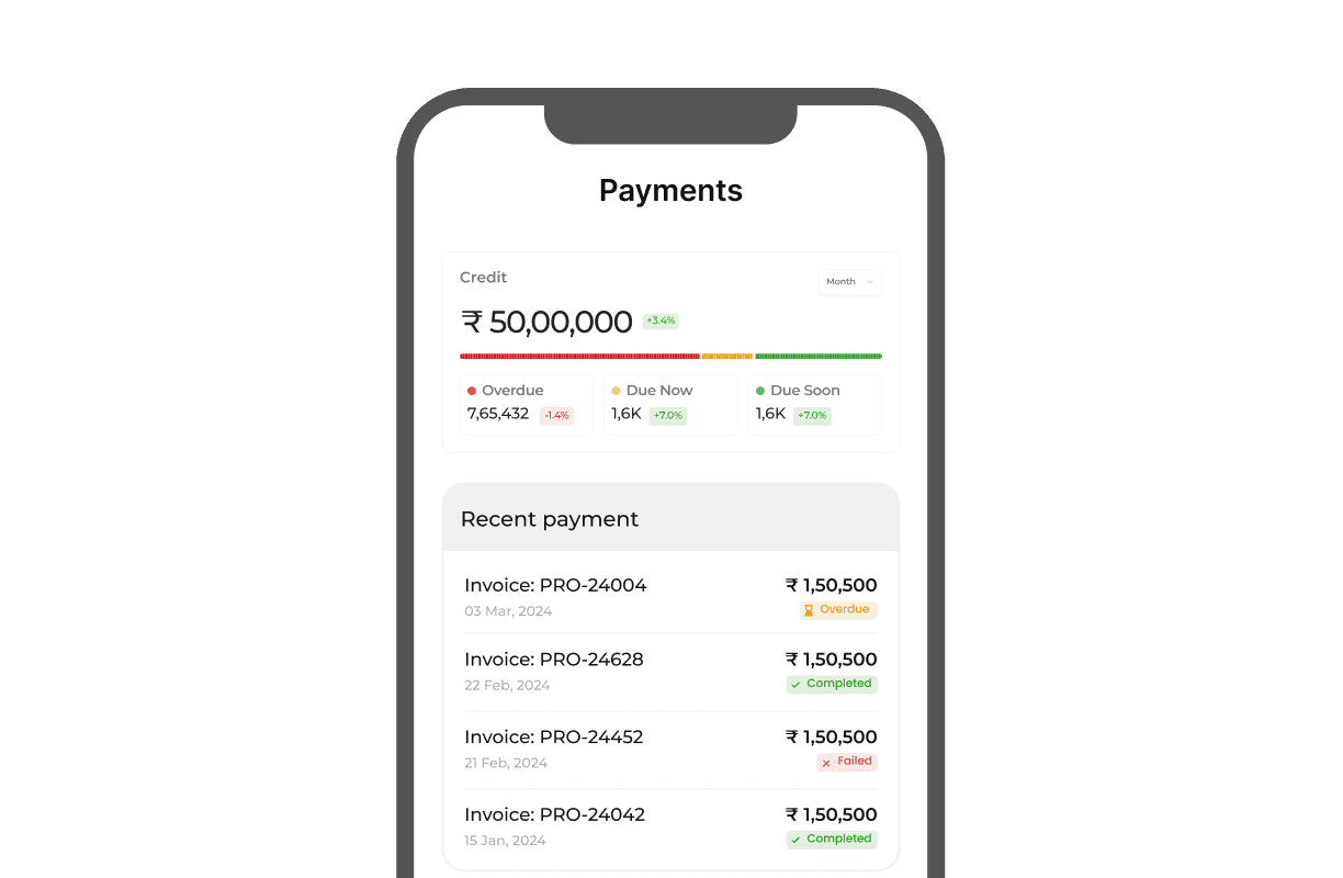 15+7 day credit terms, auto-debit, multiple payment methods, and full invoice reconciliation — without chasing vendors.